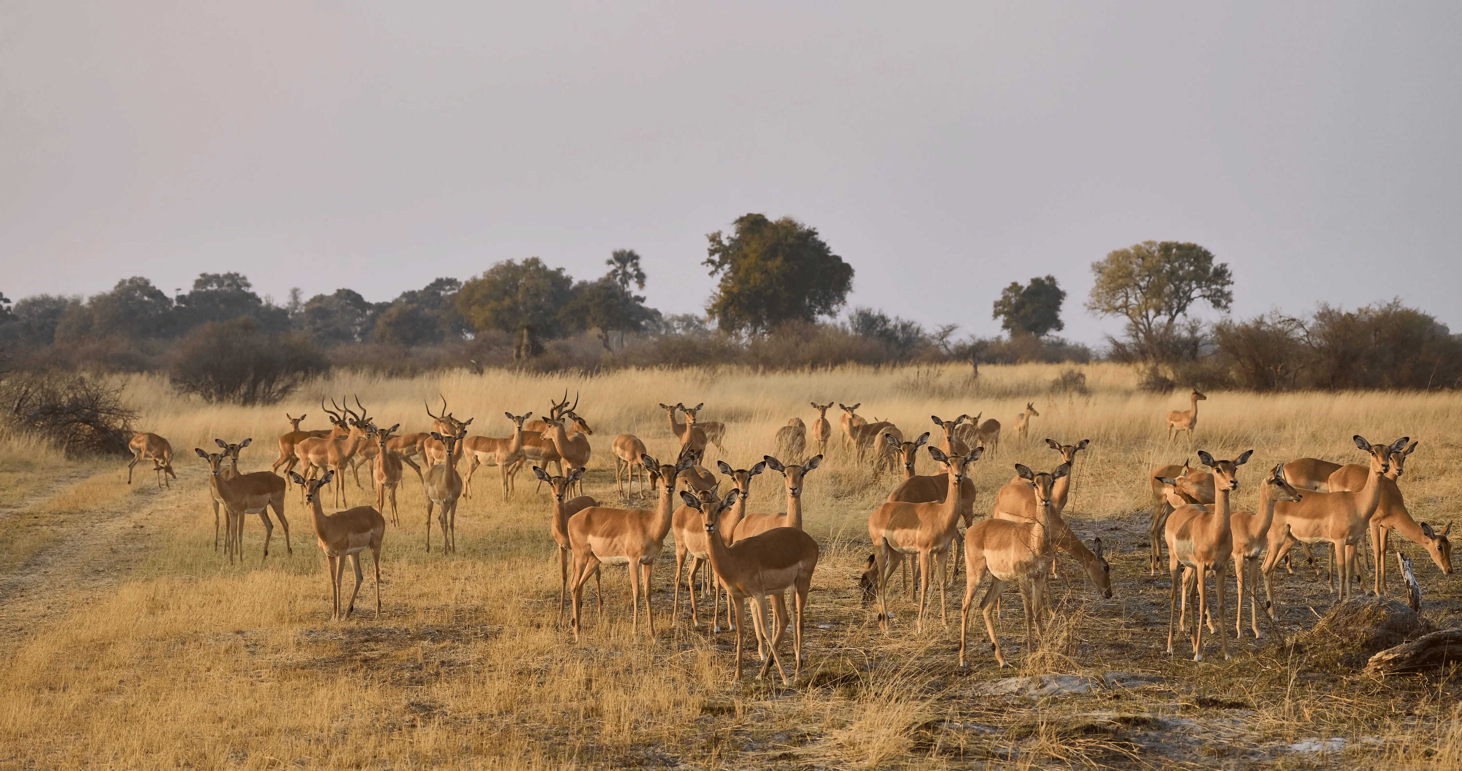 Golden hour magic! A sea of curious impalas paused in the tall grass to watch us. The warm light and their collective gaze make this a breathtaking, unforgettable safari memory.