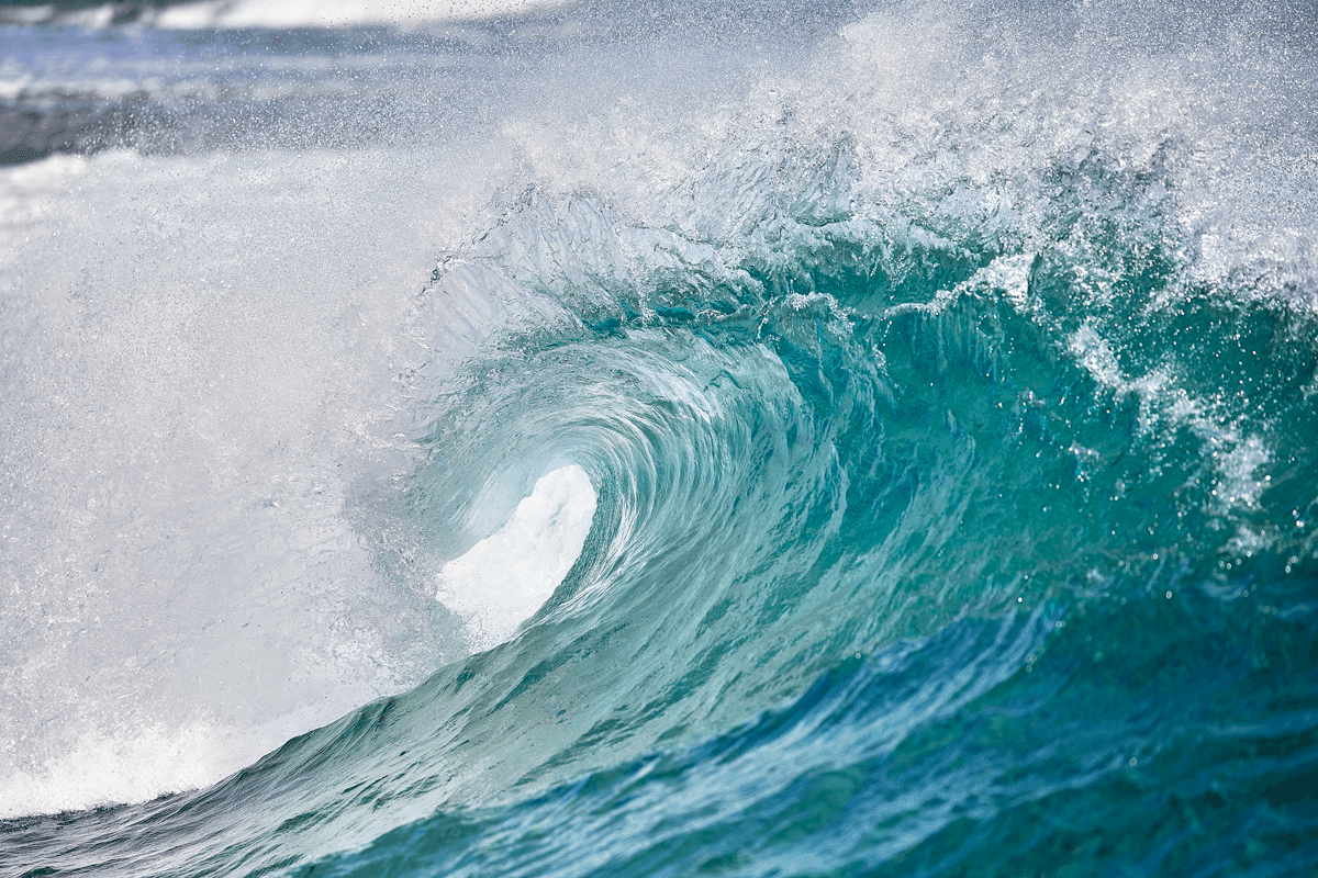 A liquid curve of turquoise light holds the ocean’s breath. In its center, a silent world reveals itself—a fleeting home for the brave heart who dares to dance with the cresting unknown.