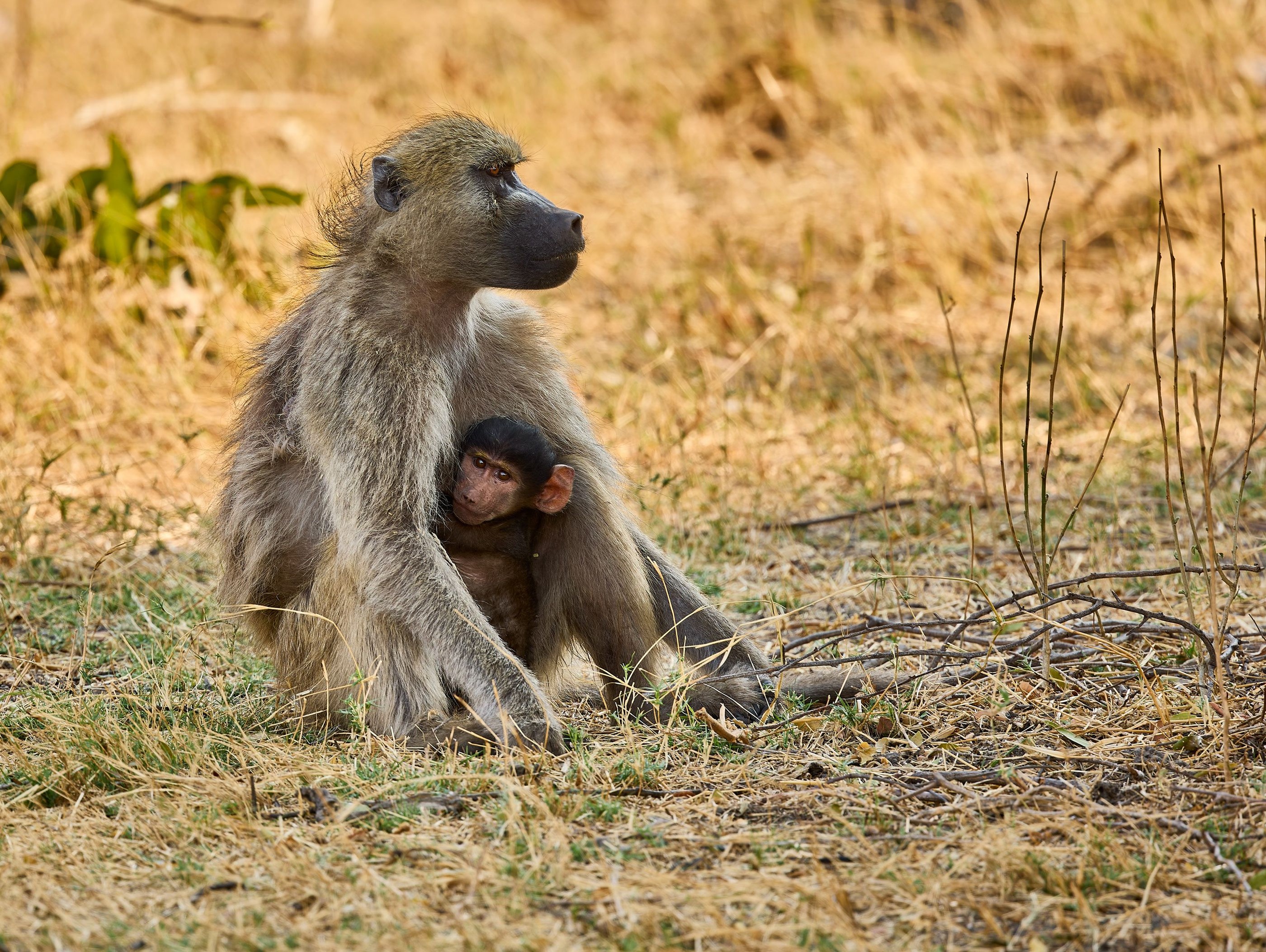 A fragile new life finds refuge in the embrace of its elders. Amidst the sun-bleached grass, the legacy continues, guarded by sharp instincts and the tender, primal pull of kinship.