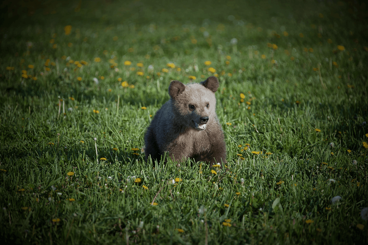 Amidst the dandelion gold, a tiny heart beats with the rhythm of the wild. This small cub is a gentle reminder of the world’s quiet wonders and the beauty of a life just beginning to bloom.